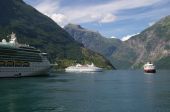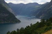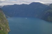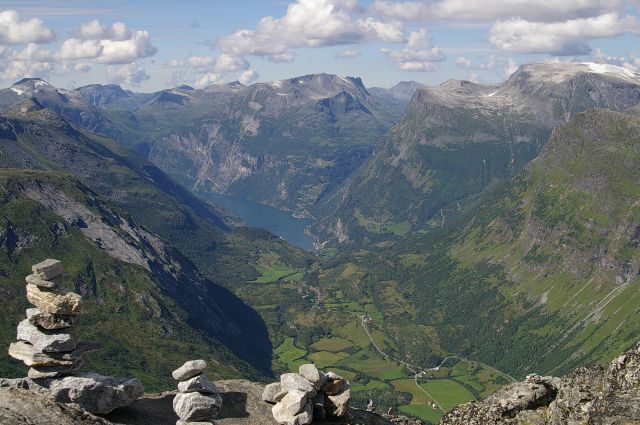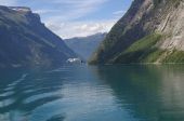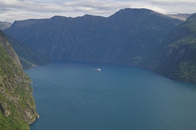 Wenn man Urlaub im Nachbarfjord macht ist Ort und Fjord Geiranger natürlich Pflichtprogramm. Wir unternahmen eine Tagestour. Früh fuhren wir nach Valldal um dort mitsamt Autos an Board der kleinen Fjordfähre zu gehen.