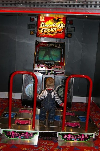 und zu diversen Spielplätzen. Simon probierte gleich mal den Tanzautomaten. Den Schlund der Fähre verliesen wir