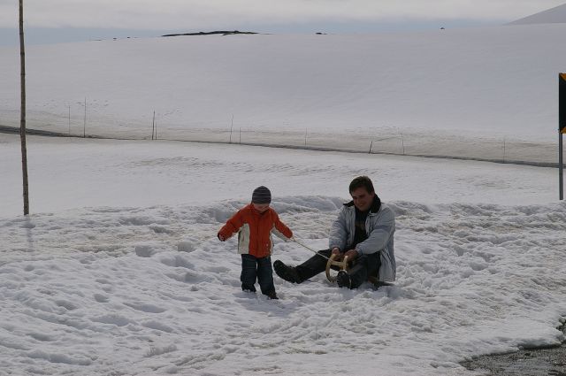 wir auf 1000 m ü NN einfach mal anhalten und den Schlitten auspacken. Auch Papa durfte mal fahren :-). Auf der Weiterfahrt