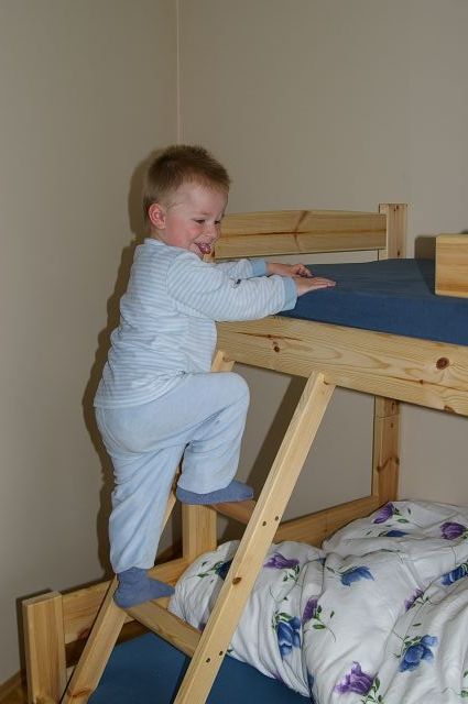 Nach dem Frühstück spielten wir im Kinderzimmer auf dem Doppelstockbett. Simon war sichtlich begeistert von der