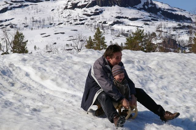 zugeeist. Auf dem Parkplatz nutzten wir den zusammengeschobenen Schnee als Rodelhang. Die Piste war zwar nicht