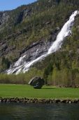 Durch einige Tunnel kamen wir nach Odda und fuhren weiter am Sandevatnet entlang zum Laatefossen. Dort war die