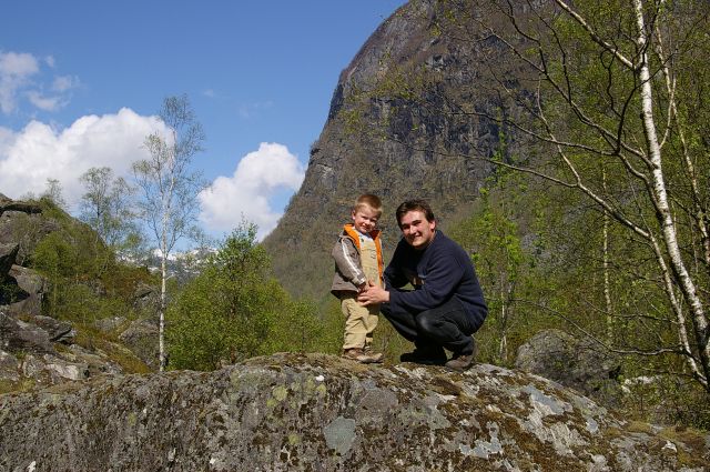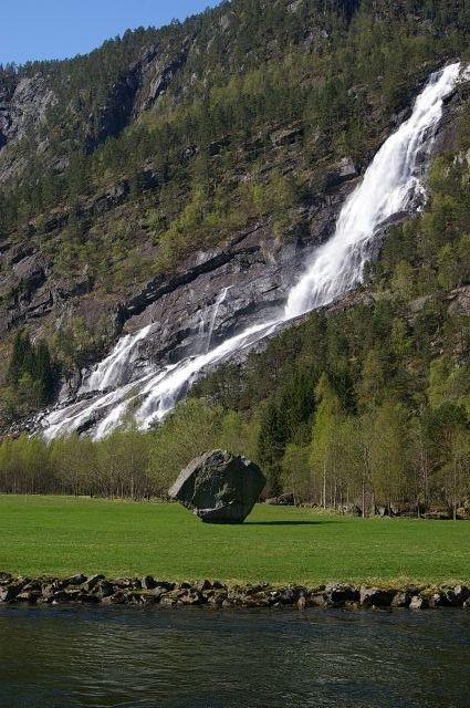 Auf dem Weg zurück nach Odda stoppten wir kurz am Oddmundsteinen. Der kam 1978 von den Bergen gefallen